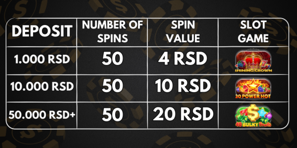 If you spin through your deposited amount today, a morning surprise awaits you tomorrow, according to the following table: