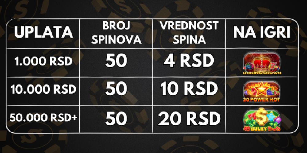 Ukoliko danas provrtiš uplaćeni depozit na slot igrama, sutra te očekuje jutarnje iznenađenje, i to po sledećoj tabeli: